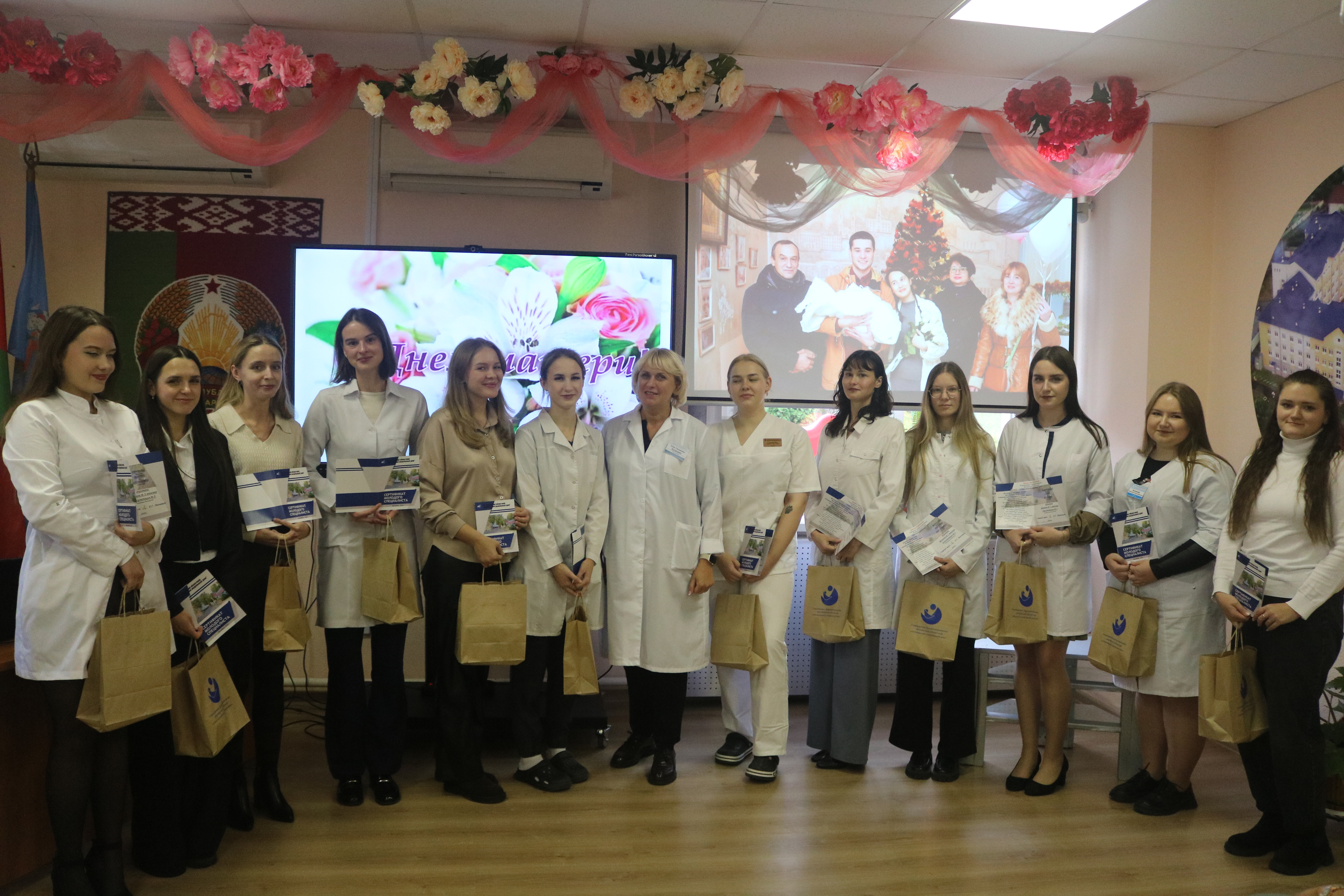 Главный врач Елена Леонович, председатель первичного профсоюзного комитета Валерия Гулина, врач-акушер-гинеколог (заведующий) филиала №3 женская консультация №3 Оксана Старанцова выступили с напутственными словами молодым специалистам, вручили сертификаты и памятные подарки.